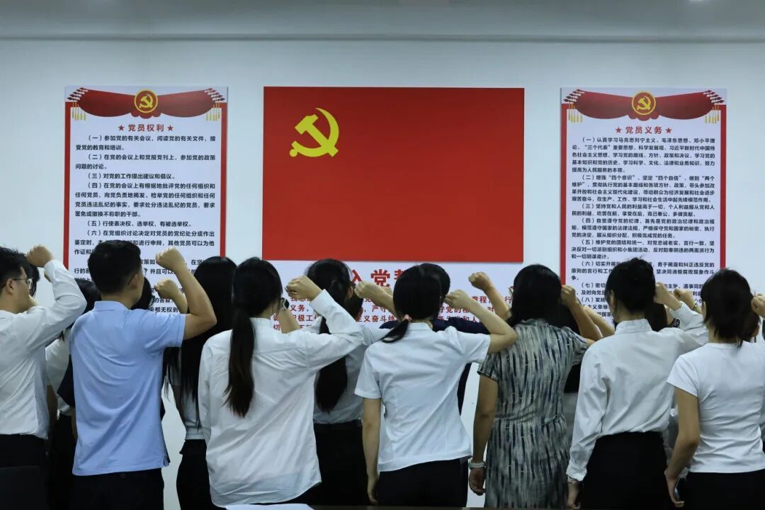 仪式最后,全体预备党员在庄严的党旗下进行宣誓,铿锵的誓言回荡在会场,彰显了新一代青年党员的坚定信念。