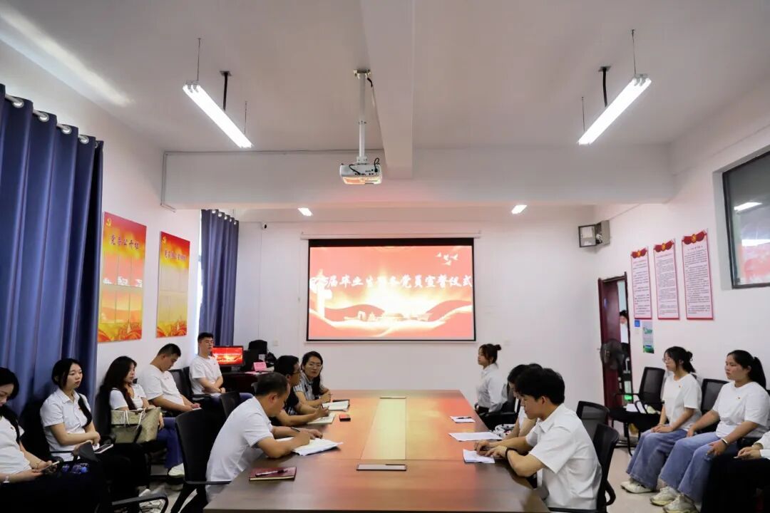 为凝聚毕业生奋斗力量,强化毕业生党员责任担当,6 月 26 日,经济与管理学院举行毕业生预备党员宣誓仪式暨2025 届毕业生座谈会。学院党总支书记章志刚,团总支书记李应,学工办副主任许超,学生党支部书记宋庆芳、组织委员王慧华,与毕业生代表、预备党员齐聚一堂,共话成长感悟,同擎信仰之光。