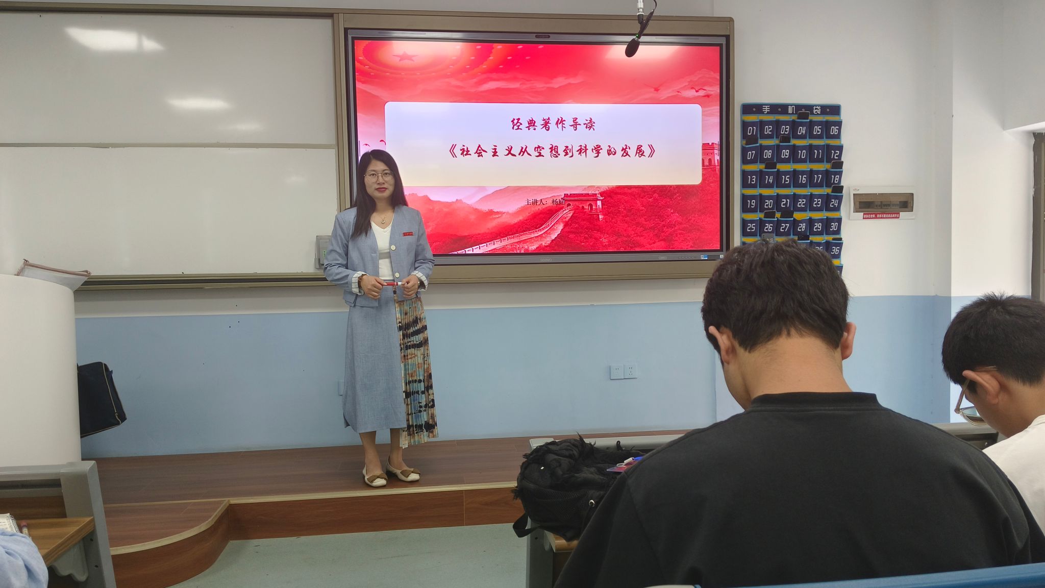 本次活动以学生自编自导的微电影拉开帷幕。马克思主义原理教师杨庭通过放映班级同学自主创作的马克思主义微电影,生动展现青年学子在学习生活中感悟马克思主义的时代价值。展映结束后,杨庭老师以“《资本论》中的经济规律与当代财务管理”为题展开导读,并结合财务管理专业特色,选取“商品二重性”“剩余价值理论”等经典章节,引导学生理解马克思主义理论在数字经济时代的现实意义。最后,杨庭老师强调,“财务报表不仅是数字的堆砌,更是生产关系与社会价值的映射。读懂《资本论》,才能更深刻地把握财务管理的伦理维度。”