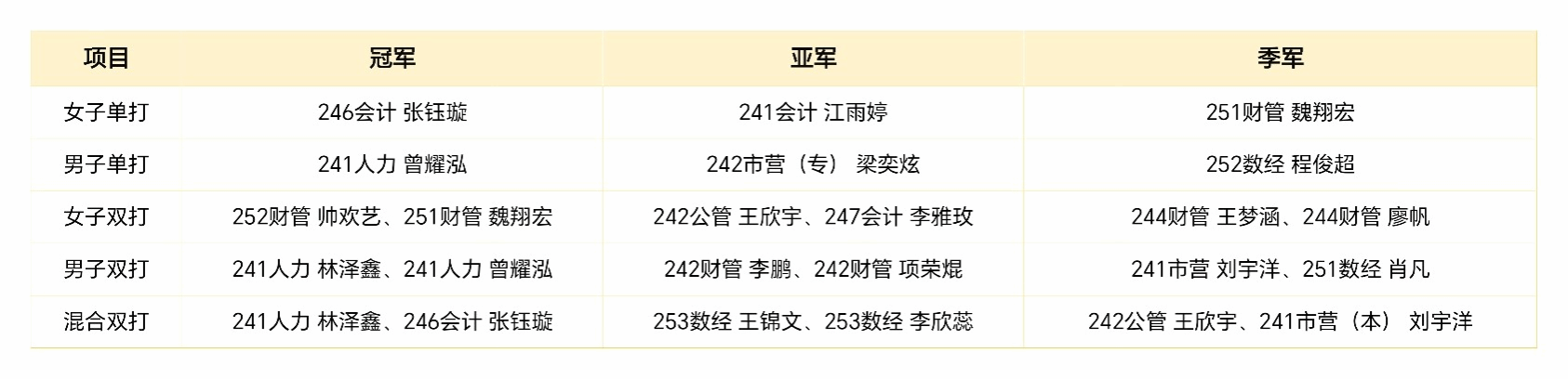 经过多轮激烈角逐,以下同学取得优异成绩。