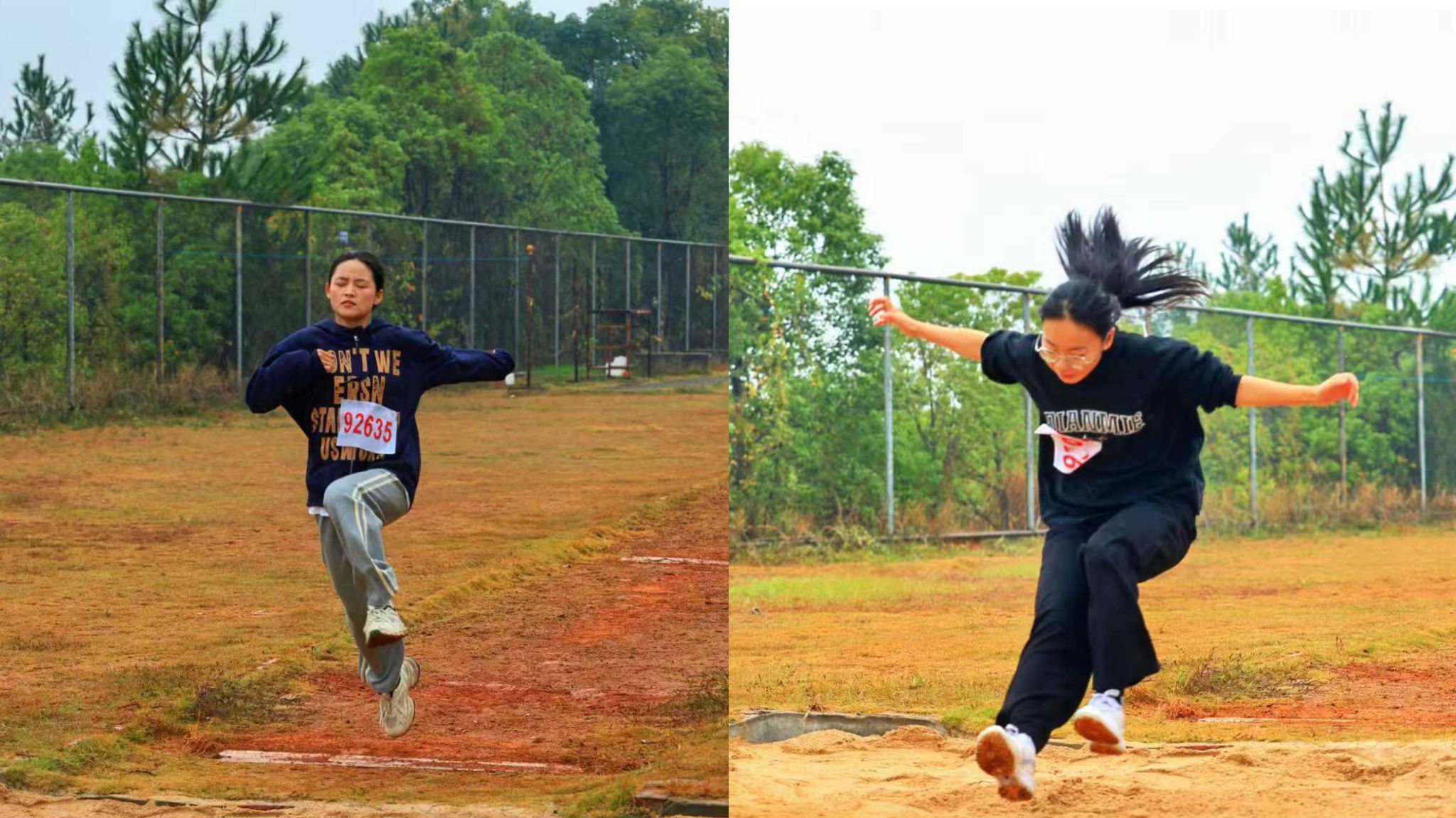 跳远沙坑前,运动员们助跑、起跳、腾空、落地,一系列动作行云流水,奋力跃向更远的距离;