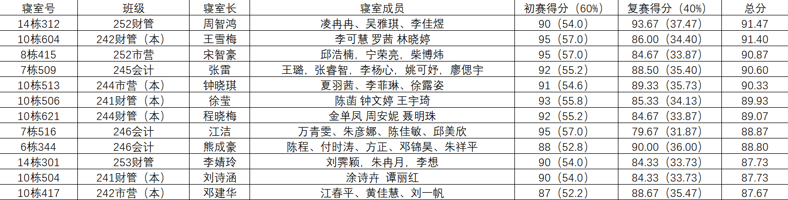 经过初赛和复赛的综合评定,最终12间寝室凭借“集体学习氛围浓厚、学习成果突出、互助机制完善”的特质脱颖而出,获评经管学院首批“学习型寝室”。