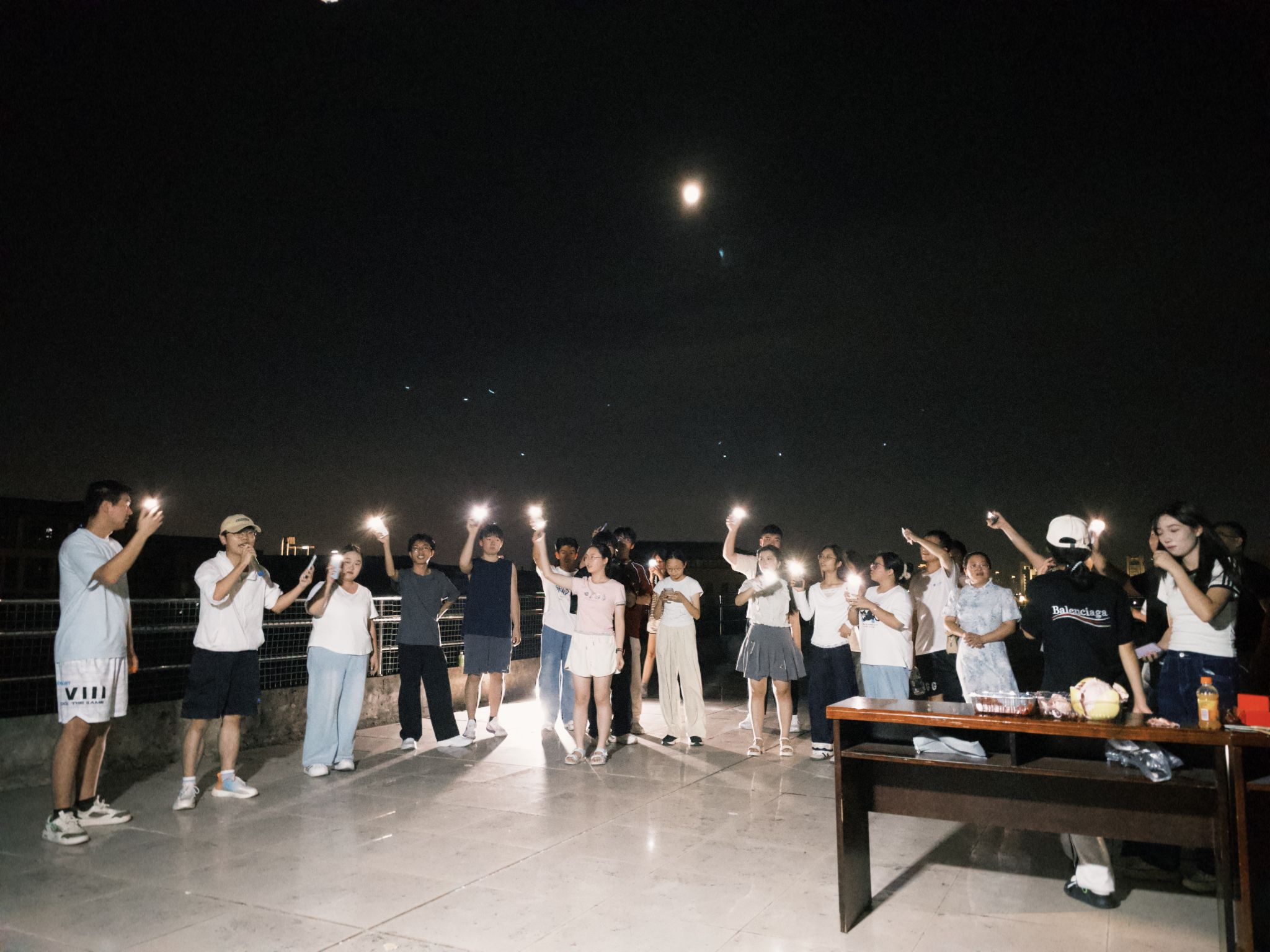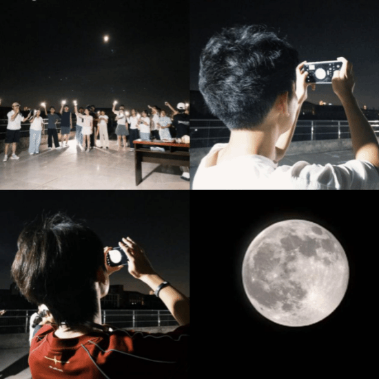 夜幕渐深,月光洒满活动场地。师生围坐赏月,歌唱环节率先拉开序幕:有同学选择轻快的民谣,也有合作演绎经典红歌,悠扬旋律不时引来全场跟唱。随着熟悉的前奏响起,全体师生共同唱响《但愿人长久》,清亮的歌声在夜空回荡,将家国团圆的美好情愫推向高潮。